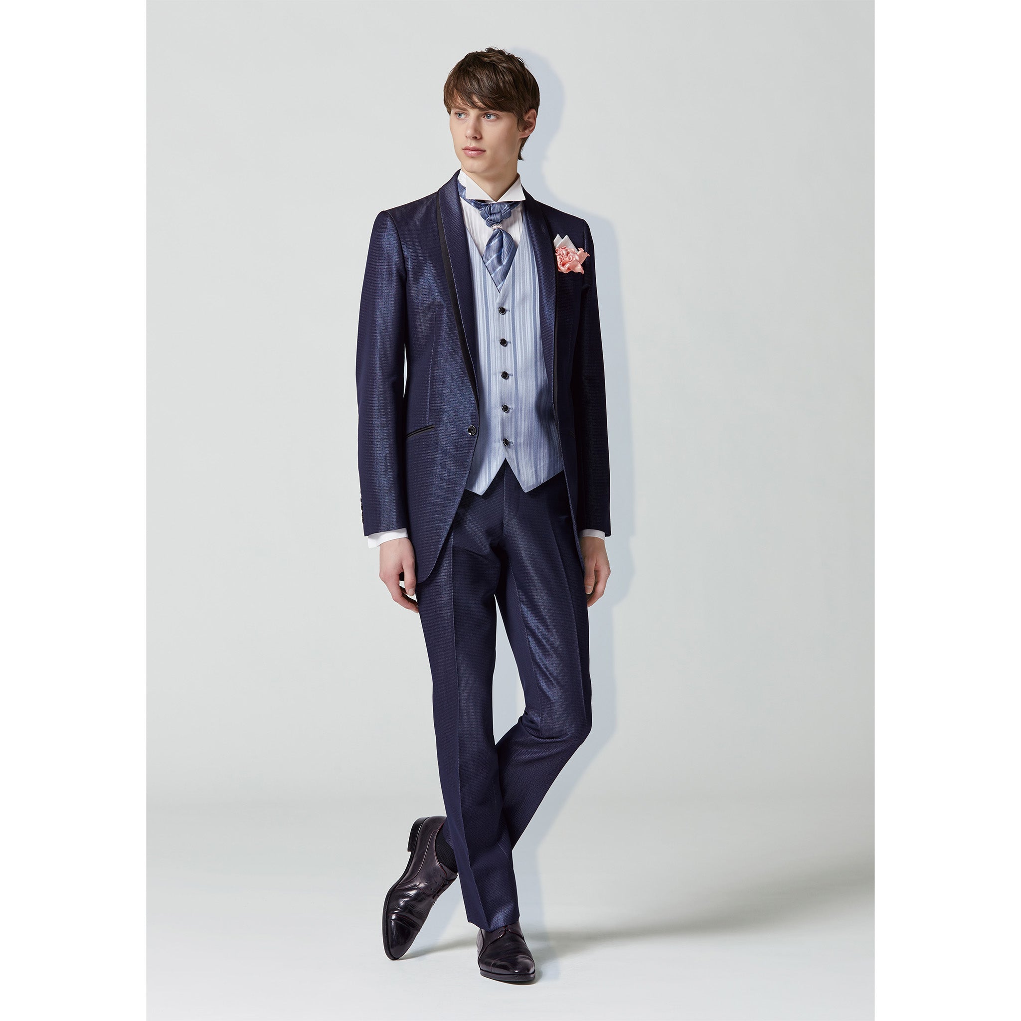 This Italian-style tuxedo is made of Morphotex material with a pin-dot pattern based on iris navy. The deep V-zone accentuates the chest area in a sexy way, and is paired with a refreshing colored inner layer. Enjoy the Italian atmosphere of freedom and elegance.