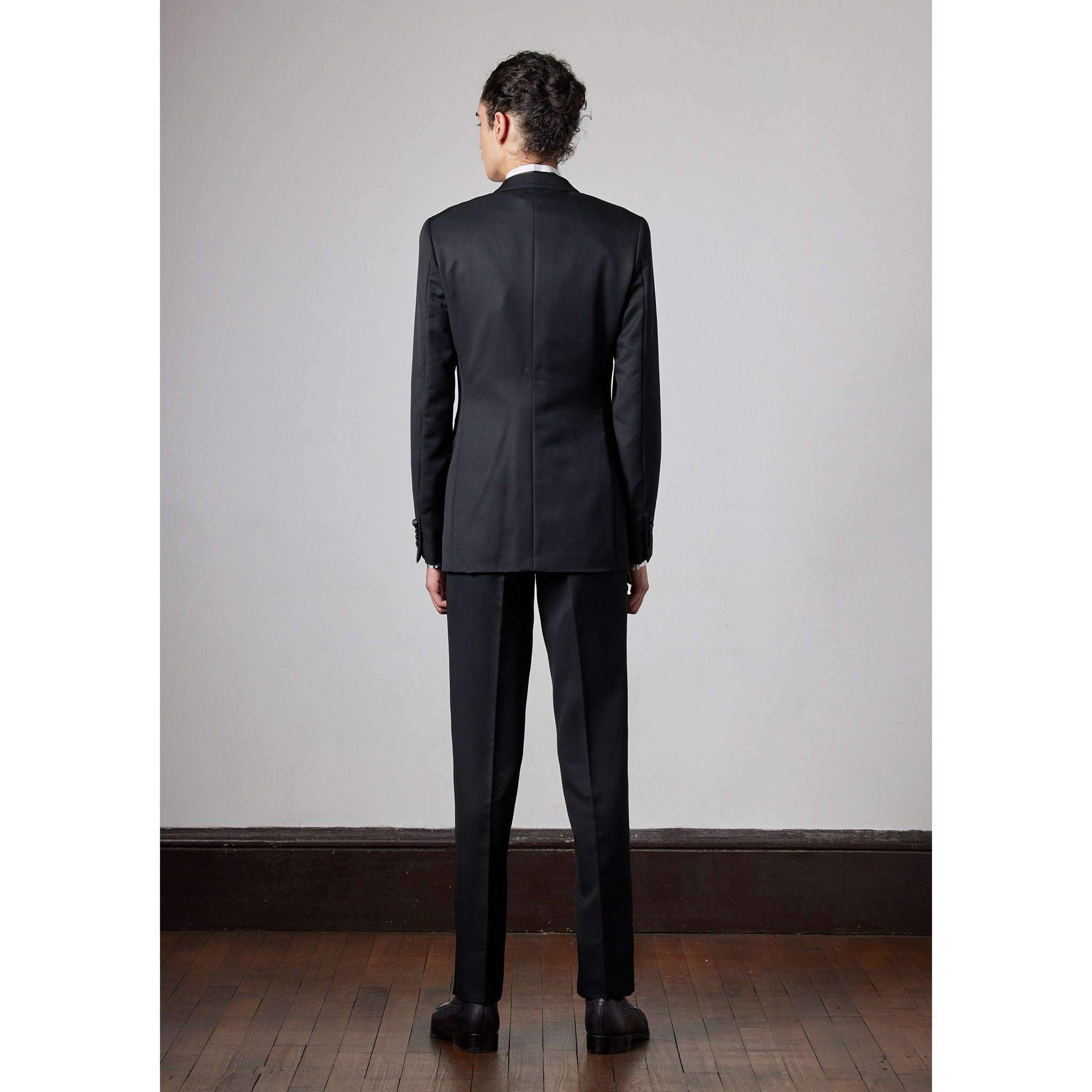This tuxedo is made from Dormeuil's high-quality material, which has the softness of cashmere and the strength of mohair. The simple and elegant peaked lapels are accented with a semi-double vest and pointed end bow tie for a deep look.