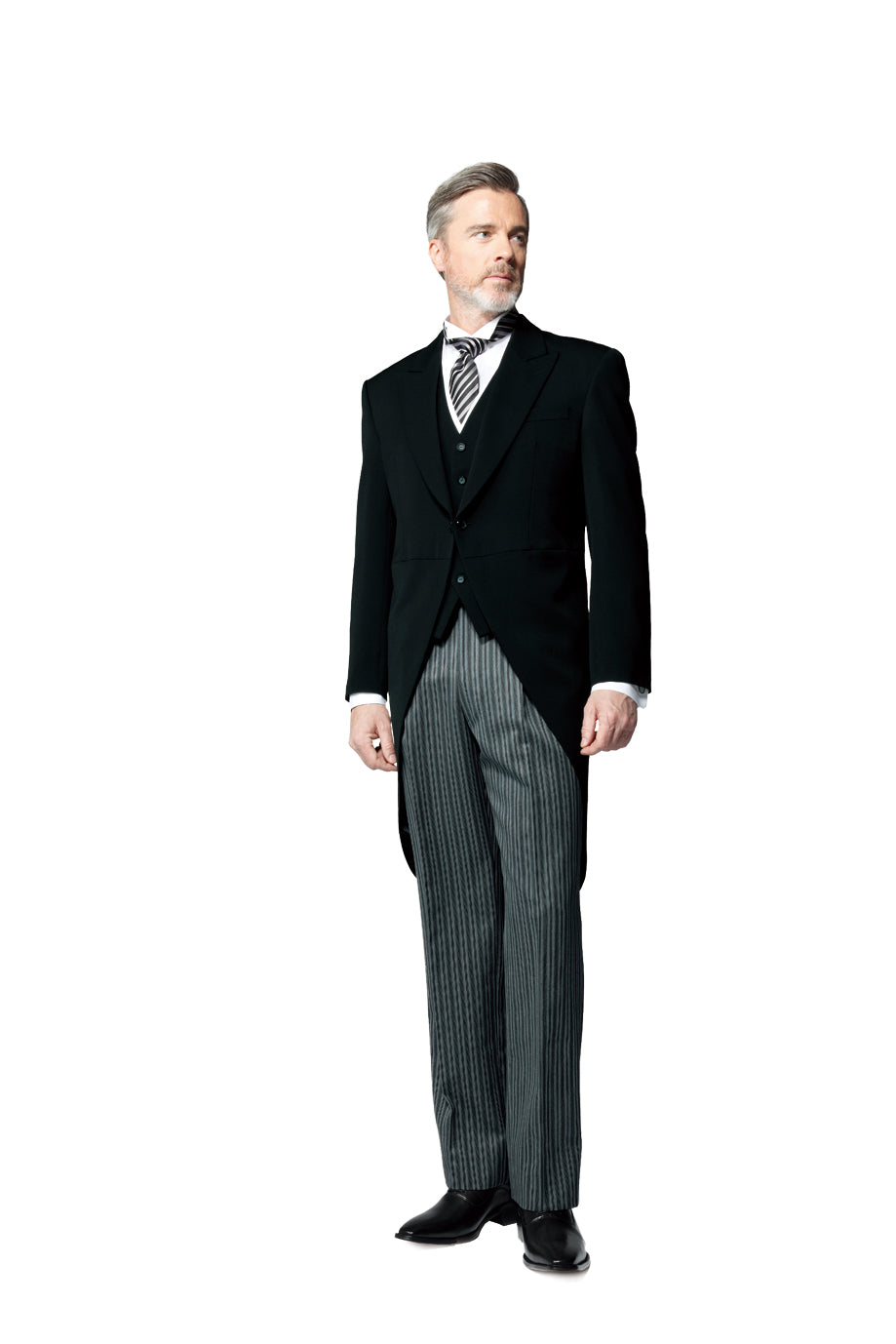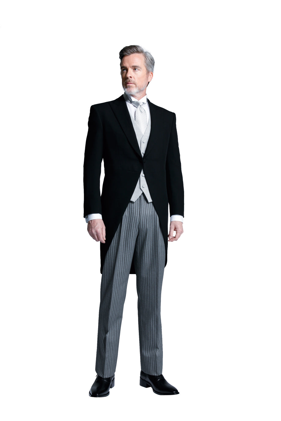 Tuxedo, tie, vest, shirt, handkerchief, shoes, gloves