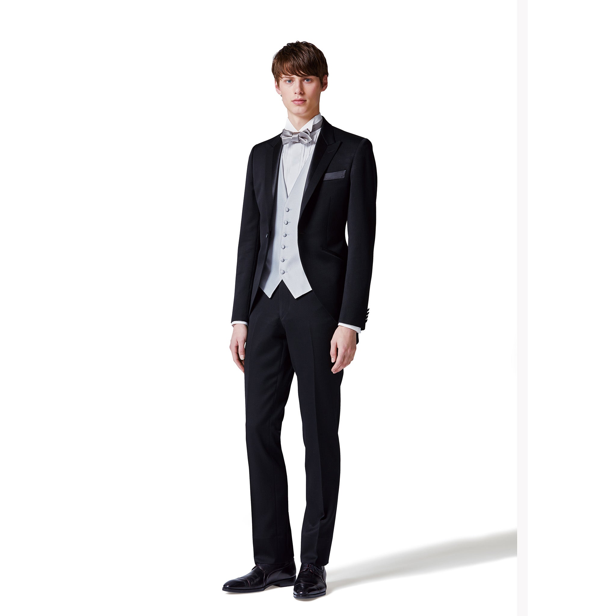 A modern update of the classic and traditional morning coat. The shorter length and revised lapel shape give it a more refined look. A perfect item for formal occasions.