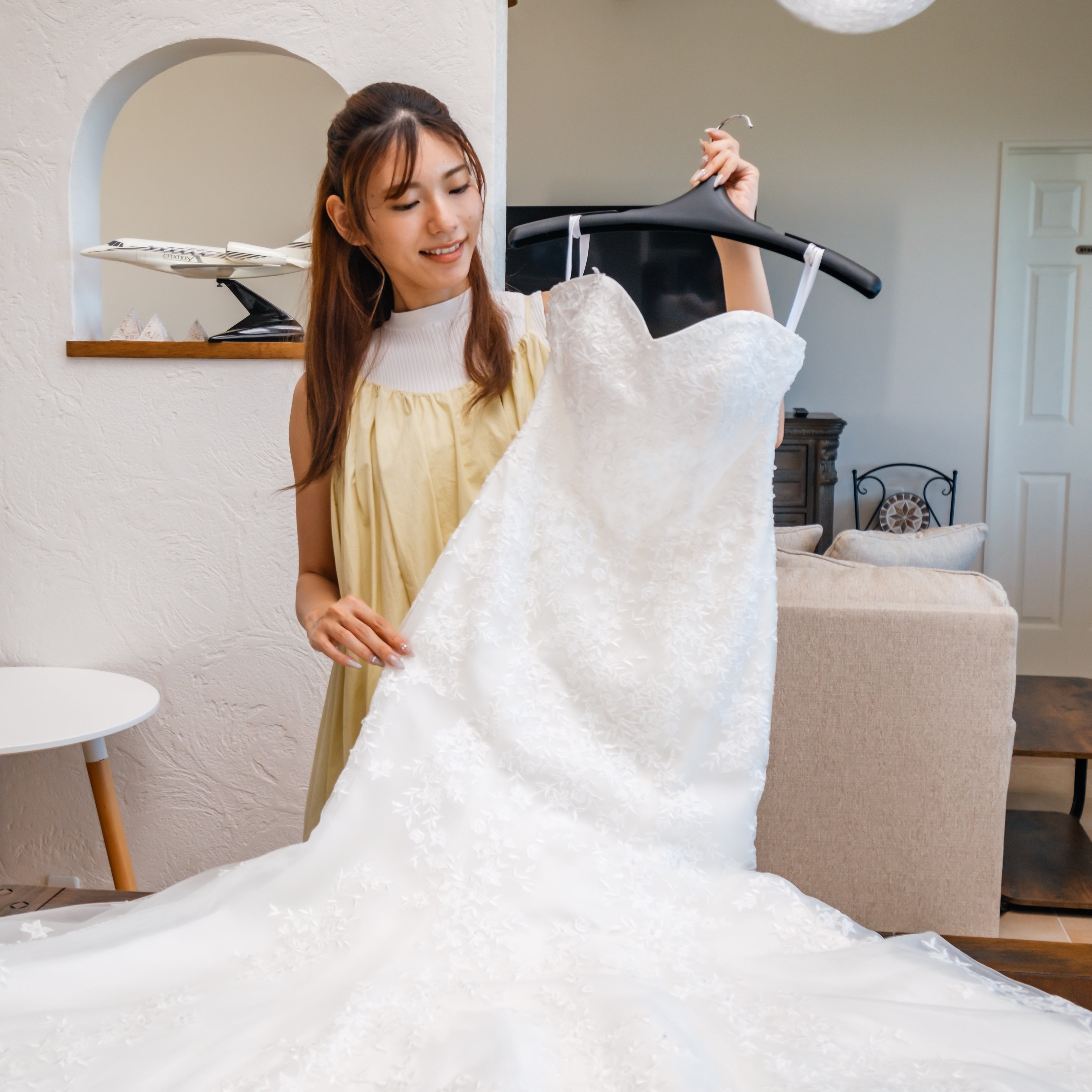 ご自宅へ取り寄せてドレスの質感をご確認いただけます。好きな時間にご試着いただけます。