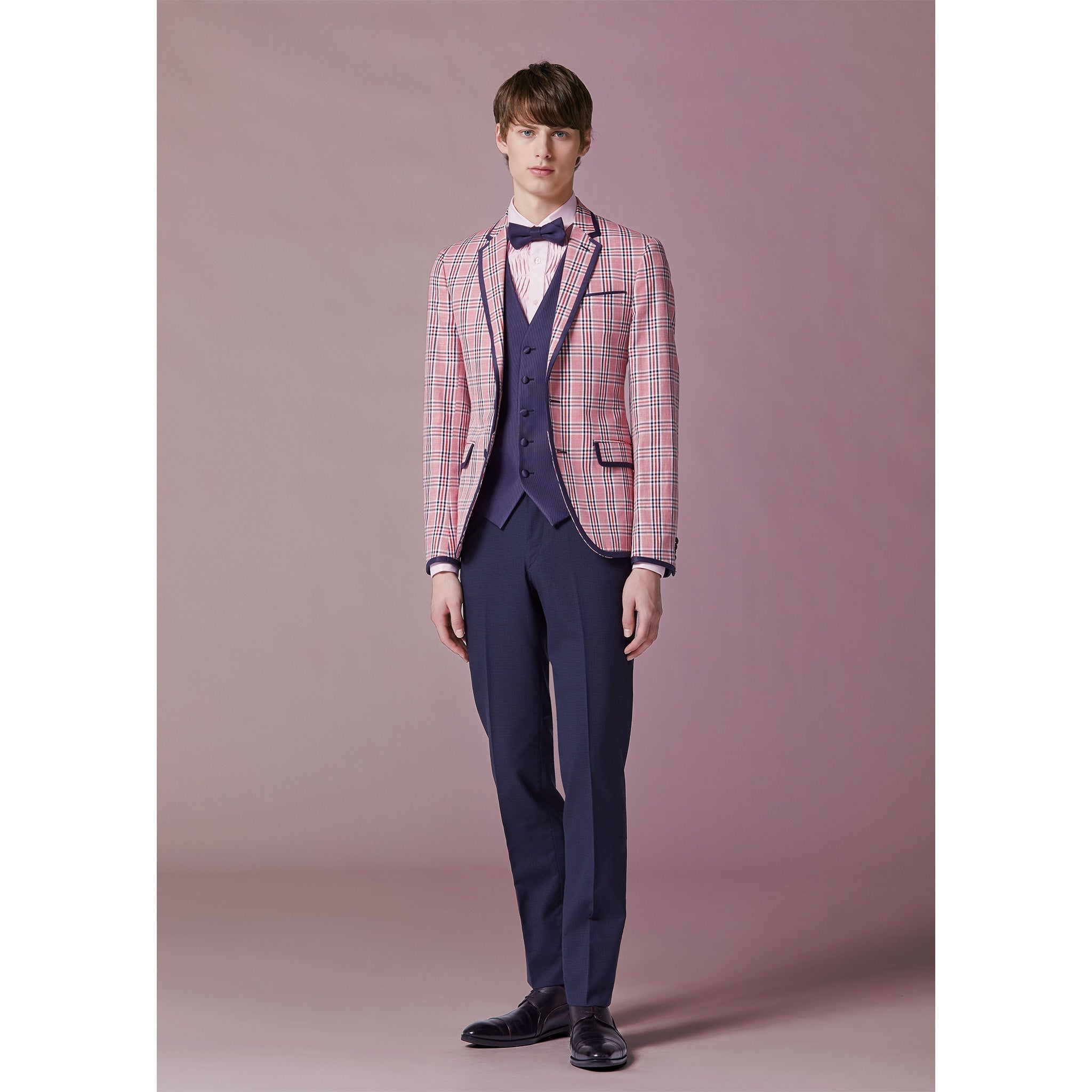コットンとリネンを使用した今までにない軽やかさを持つタキシードが誕生。可愛いカラーリングの中にも男性らしさを感じるマドラスチェックが特別な日を彩ります。ホワイトのショートパンツはリゾートに、ネイビーのパンツはレストランウエディングなど、様々なロケーションに活躍するデザイン。